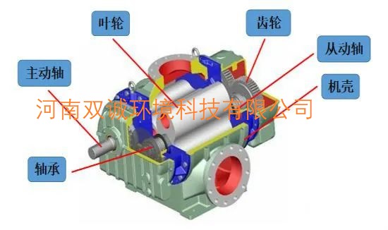 羅茨風(fēng)機(jī)主要由機(jī)殼、葉輪、傳動(dòng)軸、齒輪、軸承等組成。